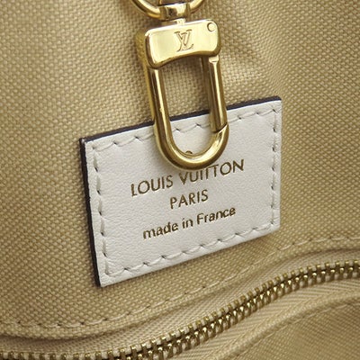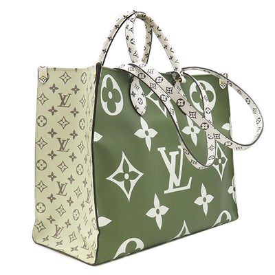 ルイヴィトン LOUIS VUITTON トートバッグ オンザゴーGM レザー モノグラムジャイアントキャンバス ホワイト×カーキ ゴールド金具 白 緑 ベージュ ショルダー M44571 RFID 【中古】