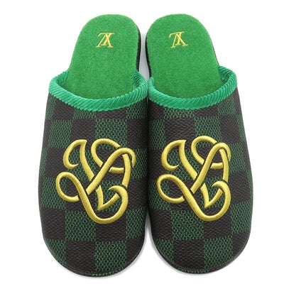 ルイヴィトン LOUIS VUITTON 靴 LVパレスライン スリッパ ミュール カーフ ラバー グリーン #10 ダミエ 低反発インソール 1ACN7H 【保存袋】 【中古】