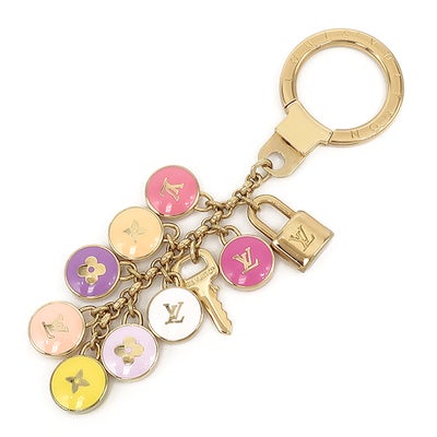 ルイヴィトン LOUIS VUITTON キーリング ポルトクレ バスティーユ メタル ゴールド×マルチカラー ゴールド金具 バッグチャーム ロゴ パステル M65381 【箱】 【中古】