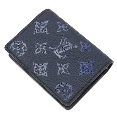 ルイヴィトン LOUIS VUITTON 二つ折り財布 ポルトフォイユ クレア モノグラムマヒナ ネイビー シルバー金具 グラデーション フライトモード M81171 RFID 【箱】 【中古】