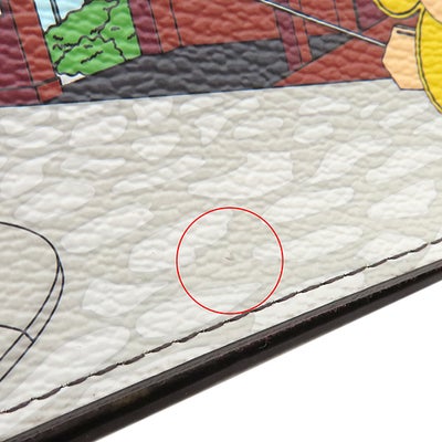 【外側】若干の型崩れやシワ、素材の浮き、表面に擦れやテカリ、金具に擦れやくすみ、ポーチファスナー取っ手にクセ【内側】生地にヤケや擦れ、薄汚れ、カードホルダー内部に僅かな擦れ【におい】保管臭 ※保存袋に僅かなシミがございます