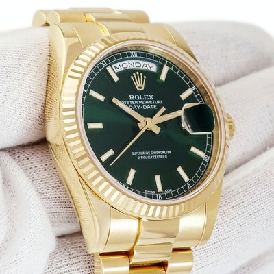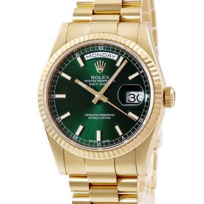 ロレックス ROLEX デイデイト 36 118238 メーカーOH済 ランダム番 K18YG無垢 グリーン フルーテッドベゼル メンズ 腕時計自動巻き グリーン 【中古】
