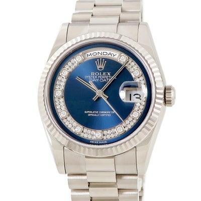 ロレックス ROLEX デイデイト ミリヤード 118239 メーカーOH済 P番 K18WG無垢 純正ダイヤ ブルー 青 メンズ 腕時計自動巻き ブルー 【中古】
