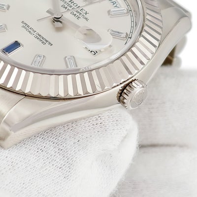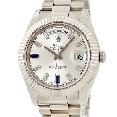 ロレックス ROLEX デイデイト II 218239BG K18WG無垢 純正ダイヤ&サファイア バゲット ランダム番 メンズ 腕時計自動巻き シルバー 【中古】