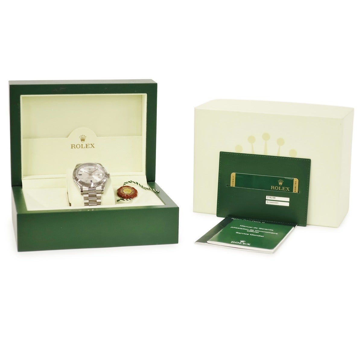 他の画像を見る ロレックス ROLEX デイデイト 40 228239 ランダム番 K18WG無垢 オリーブグリーン プレジデントブレス メンズ 腕時計自動巻き グリーン 【中古】 ROLEX腕時計 当店価格: ¥ 7,546,000 税込 中古 カートに入れる