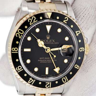 ロレックス ROLEX GMTマスター2 16713 X番 K18YG×SS コンビ デイト 回転ベゼル 黒 ヴィンテージ メンズ 腕時計自動巻き ブラック 【中古】