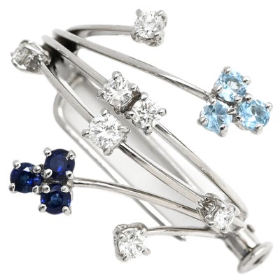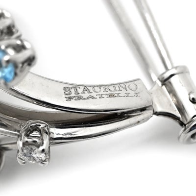 STAURINO FRATELLI スタウリーノ フラテッリ ブローチ ダイヤ 色石 ホワイトゴールド Au750 K18×K14 スプレーブローチ フラワー ダブルピン 【中古】