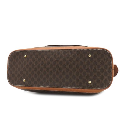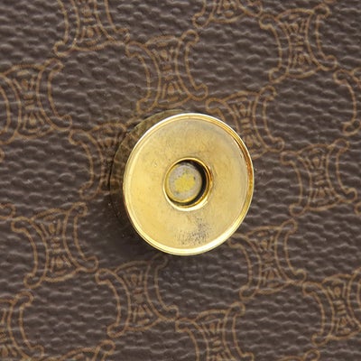 セリーヌ CELINE ハンドバッグ マカダム ハーフムーン PVC レザー ブラウン ゴールド金具 茶 ミニボストン 【中古】