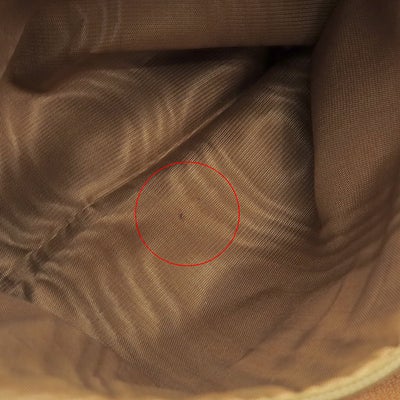 【外側】型崩れやシワ、表面レザーにヤケやシミ、擦れ、四つ角やフチに擦れや剥げ、薄汚れや押し跡、ハンドルに擦れや擦れ傷、薄汚れ、タブにクセ、コバに擦れや剥げ、割れ、ポケットのマチに擦れ、金具に小傷や塗装がれ、錆【内側】薄汚れ、外ポケットに接着のがれ【におい】保管臭