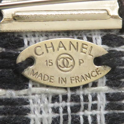 シャネル CHANEL ブローチ カメリア ブローチ ツイード ブラック×ホワイト×マルチカラー シルバー金具 コサージュ フォーマル セレモニー 【箱】 【中古】