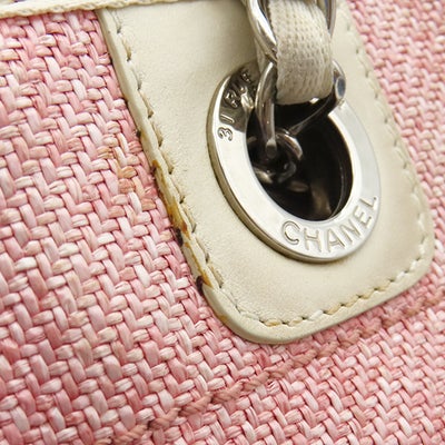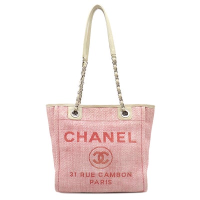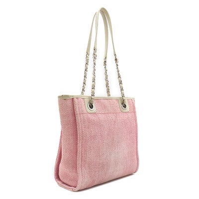 シャネル CHANEL トートバッグ ドーヴィル PM キャンバス レザー ピンク×ホワイト シルバー金具 ロゴ ココマーク チェーン トート 19****** 【中古】