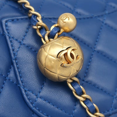 シャネル CHANEL ショルダーバッグ ミニ マトラッセ チェーン ショルダー ラムスキン ブルー ヴィンテージ金具 ココボール AS1787 30****** 【中古】