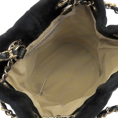 シャネル CHANEL ショルダーバッグ マトラッセ 巾着 ドローストリング ベルベット ブラック ゴールド金具 黒 ココマーク ココボール 30****** 【中古】