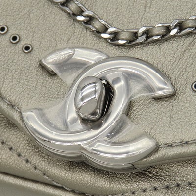 シャネル CHANEL ショルダーバッグ シェブロ チェーン ショルダー レザー シルバーグレー ココマーク エンベロープ 26****** 【中古】