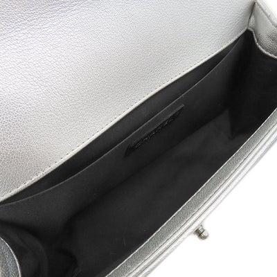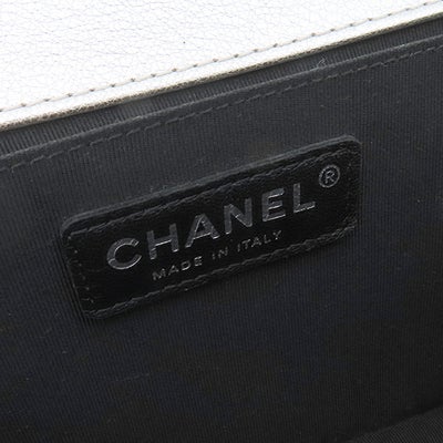 シャネル CHANEL ショルダーバッグ ボーイシャネル カーフ シルバー×ブラック シルバー金具 黒 バイカラー ココマーク 21****** 【中古】