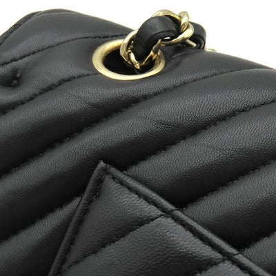 シャネル CHANEL ショルダーバッグ マトラッセ 25 シェブロン ラムスキン ブラック ゴールド金具 黒 ダブルフラップ Vステッチ 25****** 【箱】 【中古】