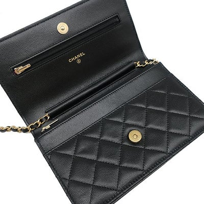 シャネル CHANEL チェーンウォレット マトラッセ チェーンウォレット レザー キャビアスキン ブラック ゴールド金具 黒 ココマーク ヴィンテージ金具 ランダムシリアル 【箱】 【中古】
