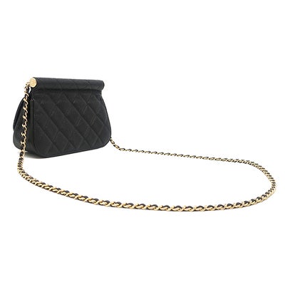 シャネル CHANEL ショルダーバッグ ミニ チェーンショルダー レザー キャビアスキン ブラック ゴールド金具 黒 ココマーク ランダムシリアル 【中古】