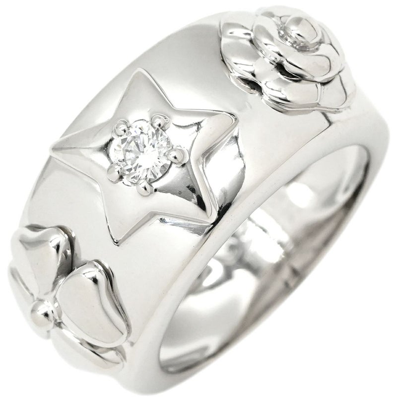 シャネル CHANEL リング 指輪 スリーシンボル ホワイトゴールド 18K 750 WG カメリア スター クローバー 1Pダイヤ 7.5号 【中古】