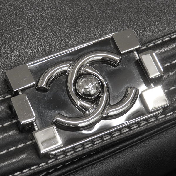 シャネル CHANEL ショルダーバッグ ボーイシャネル カーフ シルバー×ブラック シルバー金具 黒 バイカラー ココマーク 21****** 【中古】