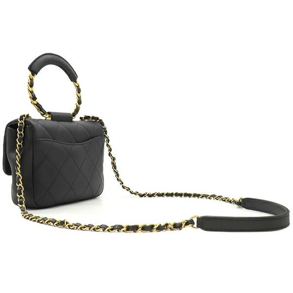 シャネル CHANEL 2WAYバッグ マトラッセ トップハンドル スモール カーフ ブラック マットゴールド金具 黒 チェーンショルダー AS1357 29****** 【箱】 【中古】