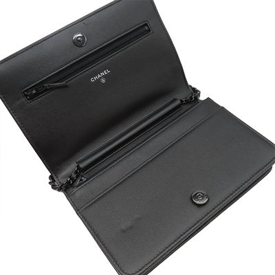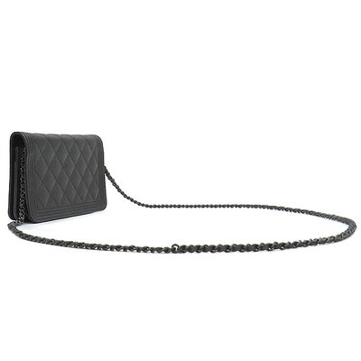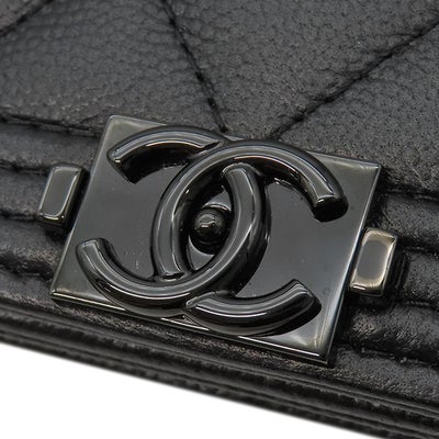 シャネル CHANEL チェーンウォレット ボーイシャネル キャビアスキン ブラック ブラック金具 黒 チェーンショルダー 24****** 【箱】 【中古】