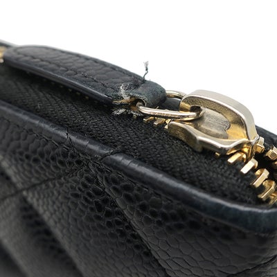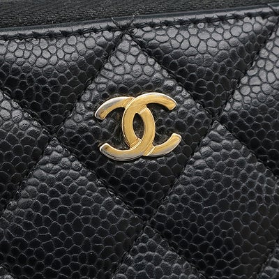 シャネル CHANEL 長財布 マトラッセ ロングジップウォレット レザー キャビアスキン ブラック ゴールド金具 ラウンドファスナー ココマーク A50097 22****** 【中古】