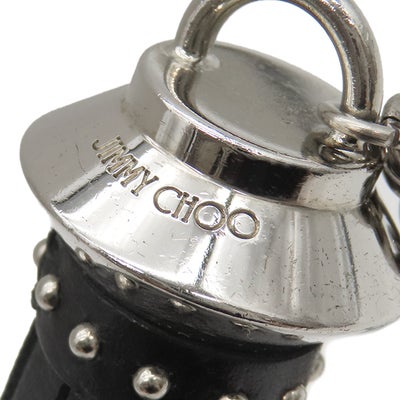 ジミーチュウ JIMMY CHOO バッグチャーム スタッズ タッセル メタル レザー ブラック シルバー金具 黒 フリンジ キーホルダー 【箱】 【中古】
