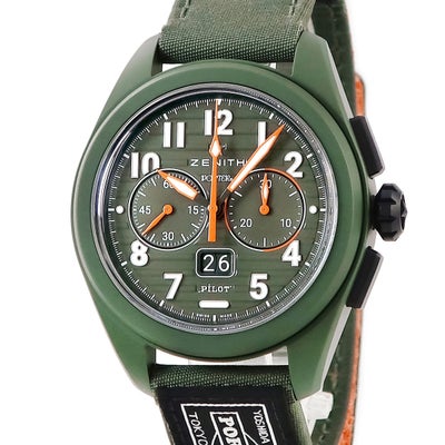 ゼニス ZENITH パイロット ビッグデイト フライバック ポーターエディション 49.4001.3652/63.I001 新品同様 メンズ 腕時計自動巻き カーキグリーン 【中古】