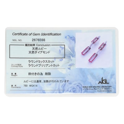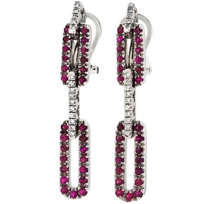 ダミアーニ DAMIANI イヤリング ルビー ダイヤ レッド×ホワイトゴールド 14K 585AU 赤 ドロップ スイング ラウンドミックス・ブリリアントカット クリップ 【中古】