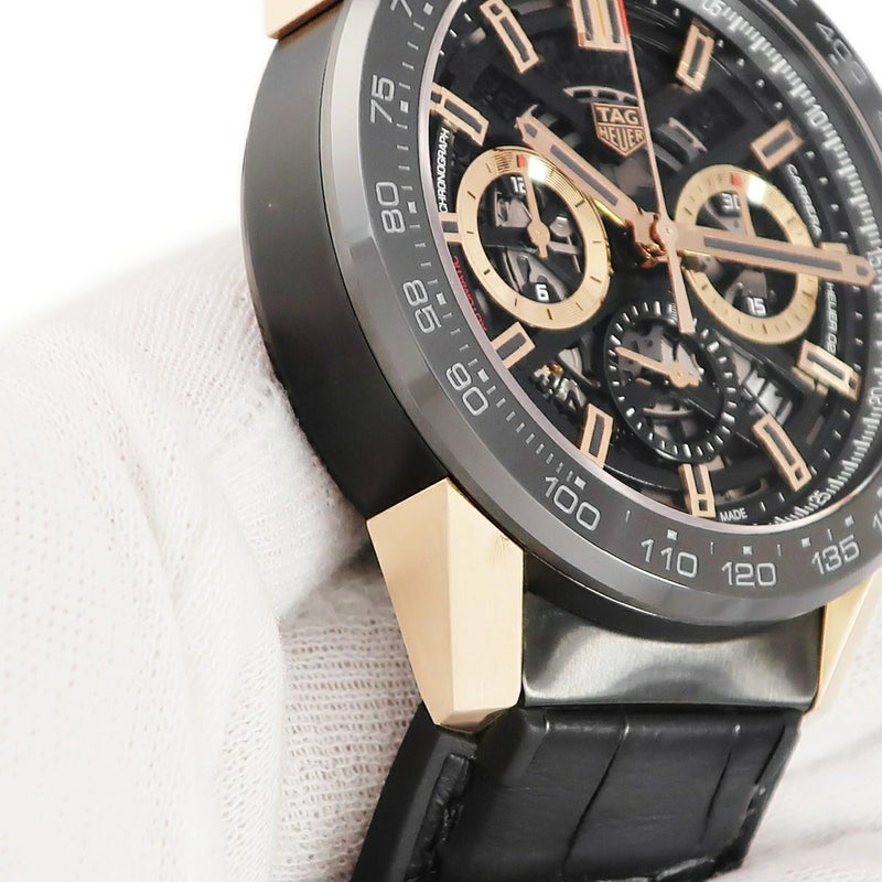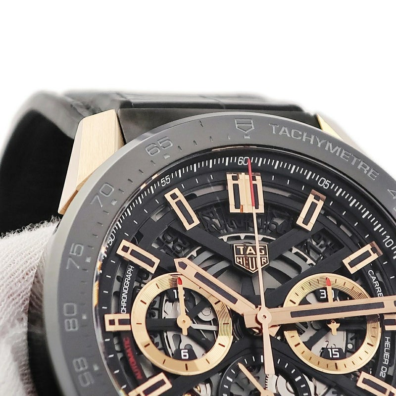 タグホイヤー TAG Heuer カレラ ホイヤー02 クロノグラフ CBG2A50.FC6450 K18RG×SS デイト スモセコ スケルトン メンズ 腕時計自動巻き ブラック 【中古】