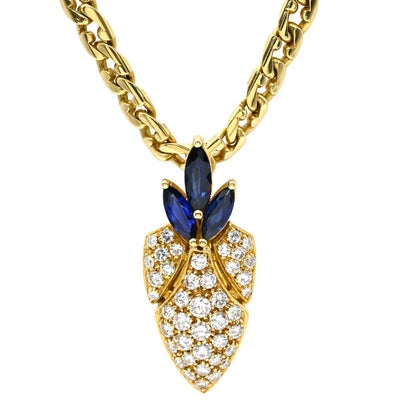 ピキョッティ PICCHIOTTI ネックレス ブルーサファイア ブルー×イエローゴールド Au750 18金 YG パヴェダイヤ 1.09ct マーキスカット 【中古】