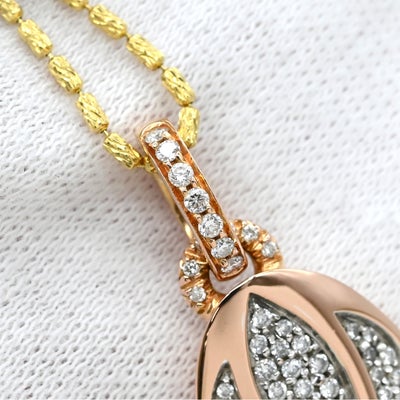 ロフレド ROFFREDO ネックレス ダイヤ ペンダント ピンクゴールドXイエローゴールド 18金 750 PG YGチェーン オーバル 【中古】