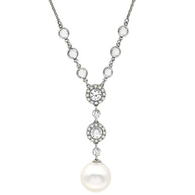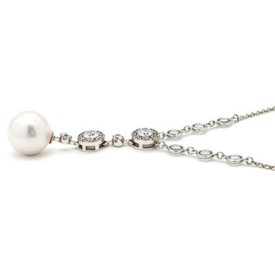 フォクシー FOXEY ネックレス 12.5mm パール ペンダント フェイクパール メタル ラインストーン パールホワイト シルバー金具 1粒 ラインストーン ドロップ スイング 【中古】