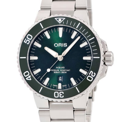 オリス ORIS アクイス デイト 01 733 7730 4157 グリーン 緑 逆回転防止ベゼル ダイバーズ メンズ 腕時計自動巻き グリーン 【中古】