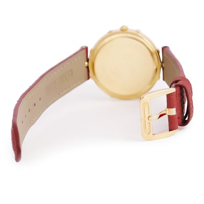 K18YG / 純正ホワイトマザーオブパール文字盤 / 未使用純正レザーバンド / 純正K18YG無垢製尾錠