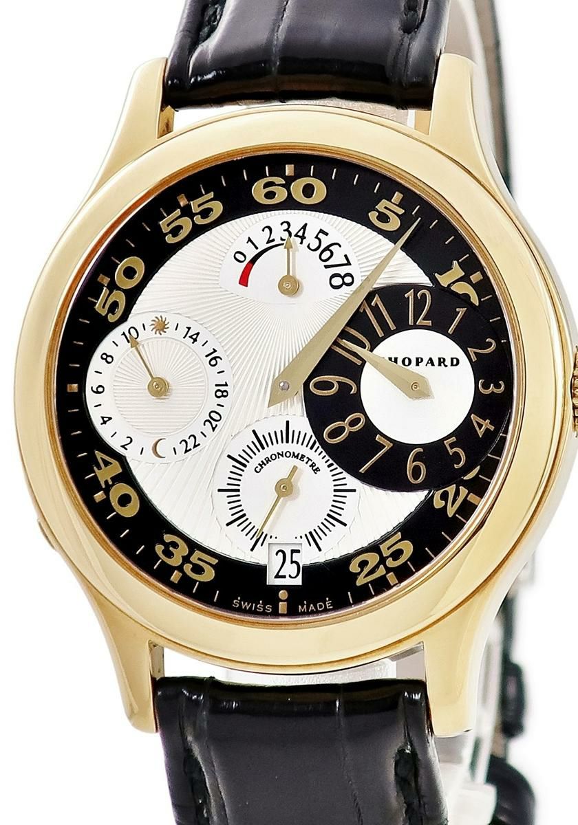 他の画像を見る ショパール L.C.U. クアトロ レギュレーター 16/1874 K18YG無垢 デイト ギヨシェ ブラック 限定 手巻き 当店価格: ¥ 1,649,400 税込 在庫切れ 当日発送 中古 詳細を見る