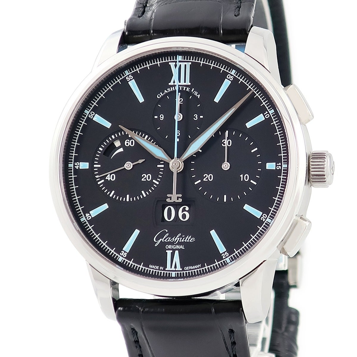 他の画像を見る グラスヒュッテ オリジナル GLASHUTTE ORIGINAL セネタ クロノグラフ パノラマデイト 1-37-01-03-02-35 スモールセコンド メンズ 腕時計自動巻き ブラック 【中古】 GLASHUTTE ORIGINAL腕時計 当店価格: ¥ 1,325,940 税込 中古 カートに入れる
