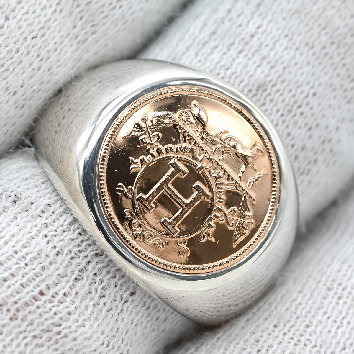 他の画像を見る エルメス HERMES リング 指輪 エクスリブリス シュバリエ ピンクゴールドXシルバー #54(JP14) カレッジリング AG925 18K PG 13.5号 【中古】 HERMESリング 指輪 当店価格: ¥ 213,640 税込 中古 カートに入れる