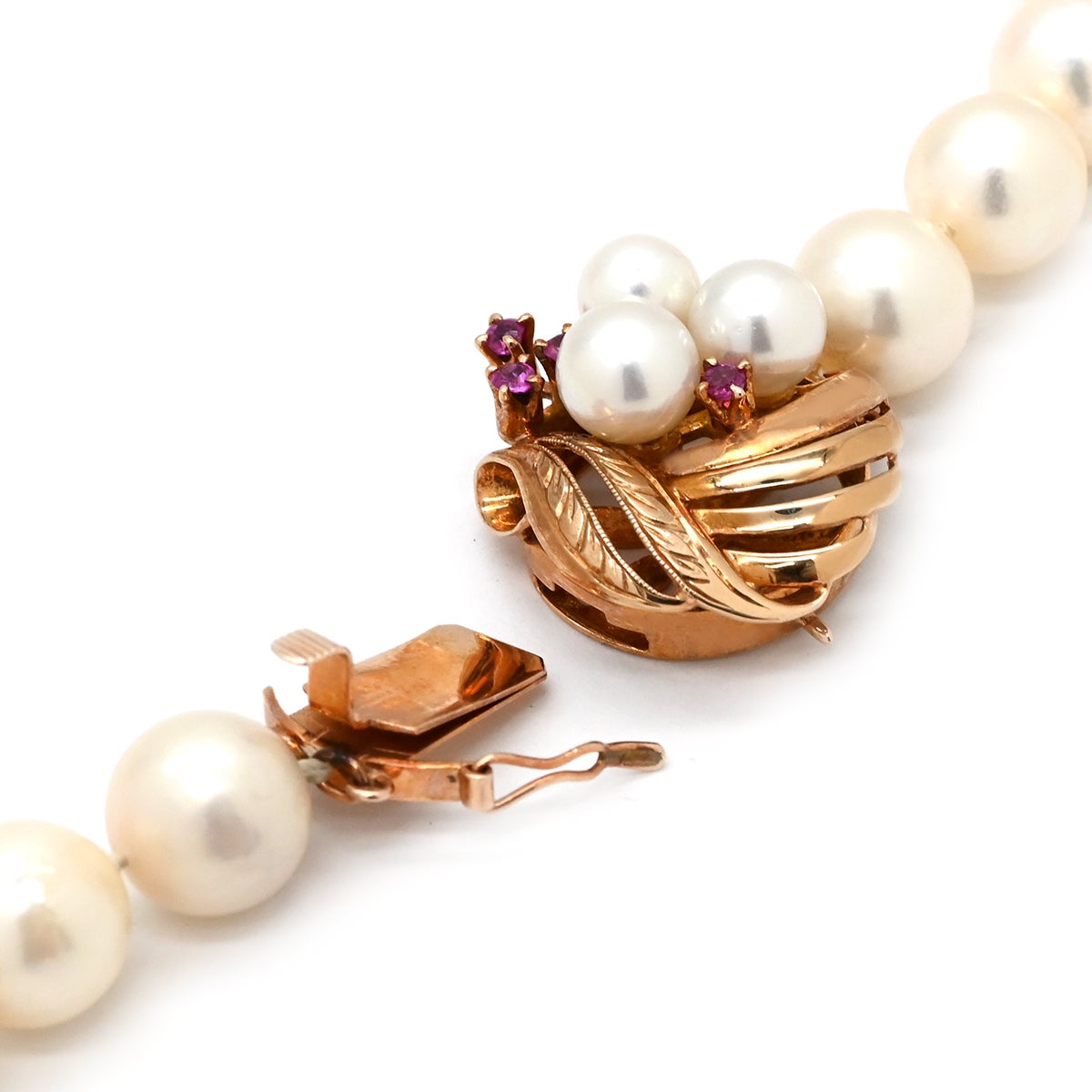 他の画像を見る タサキ TASAKI ネックレス 9.0mm パール パールホワイト×ピンクゴールド 真珠 K14PG 一連 一重 アコヤ真珠 ルビー付リーフモチーフクラスプ 【中古】 TASAKIネックレス 当店価格: ¥ 174,440 税込 中古 カートに入れる