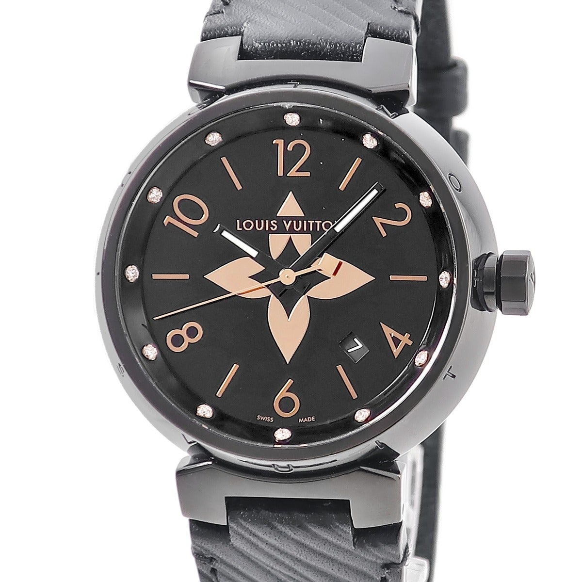 他の画像を見る ルイヴィトン LOUIS VUITTON タンブール オールブラック GM QA049Z 純正ダイヤ 黒 ブラックPVD モノグラムフラワー メンズ 腕時計クオーツ ブラック 【中古】 LOUIS VUITTON腕時計 当店価格: ¥ 247,940 税込 中古 カートに入れる