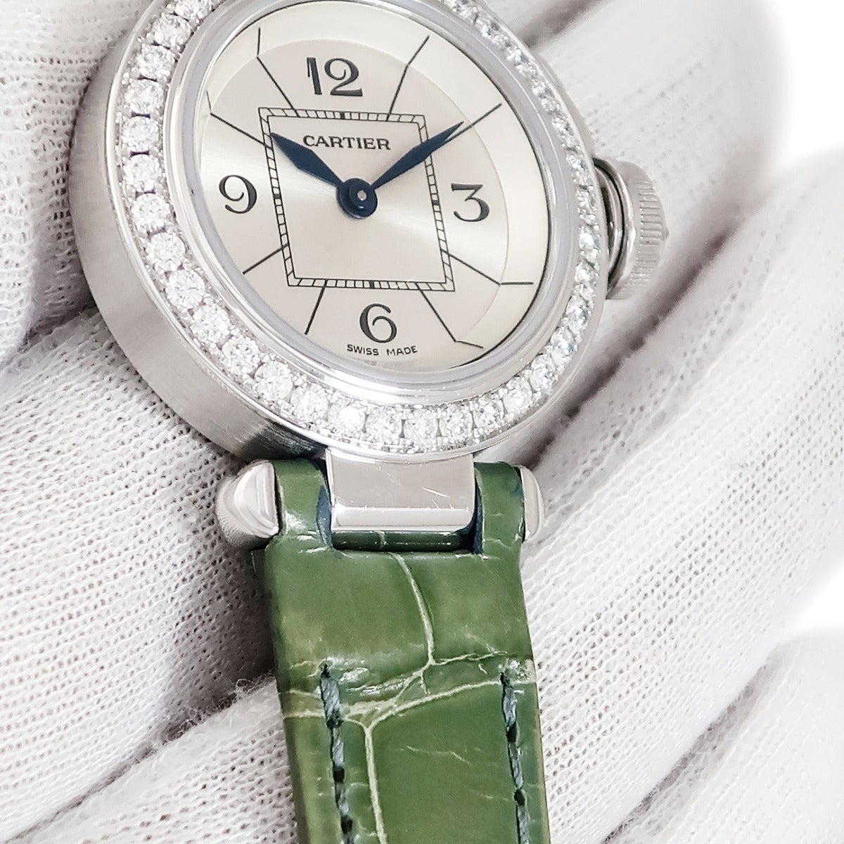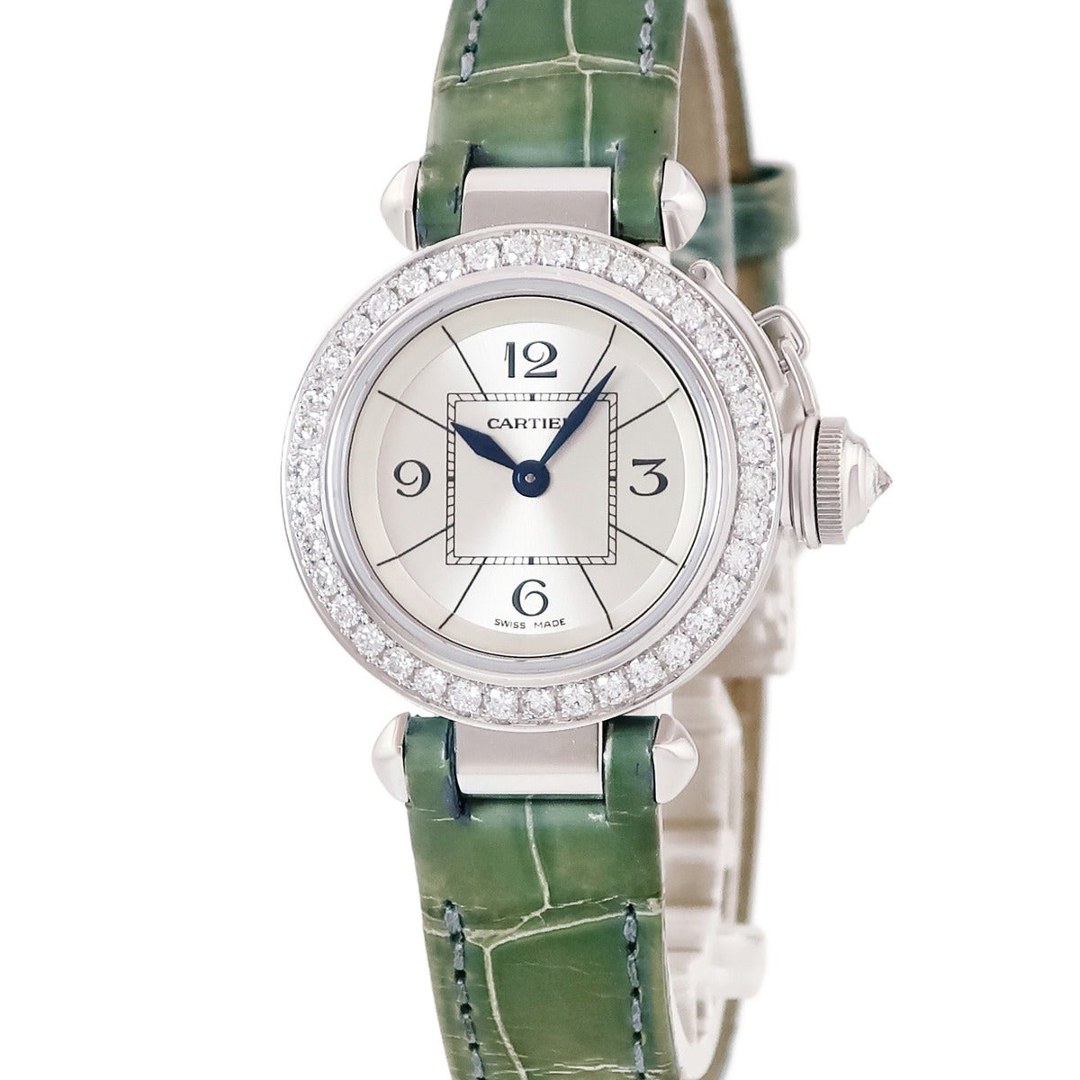 他の画像を見る カルティエ Cartier ミス パシャ 27mm WJ124027 K18WG無垢 純正ダイヤ シルバー 青針 レディース 腕時計クオーツ シルバー 【中古】 Cartier腕時計 当店価格: ¥ 970,200 税込 中古 カートに入れる