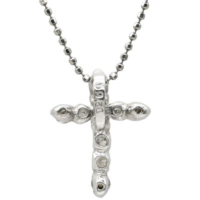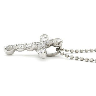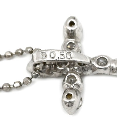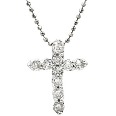 【SALE】 ネックレス ダイヤ ペンダント プラチナシルバー 十字架 クロスネックレス ダイヤモンド ダイア 10石 10P 10粒 【中古】