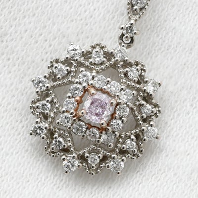 【SALE】 ネックレス ピンクダイヤ ペンダント ピンク×プラチナシルバー ダイヤモンド ダイア 【中古】