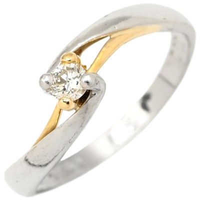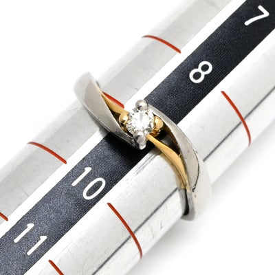 【SALE】 リング 指輪 ダイヤモンド コンビカラー プラチナシルバー×イエローゴールド Au750 18K 18金 YG×PT ソリティア 1P 1石 1粒 ウェーブ 9号 【中古】