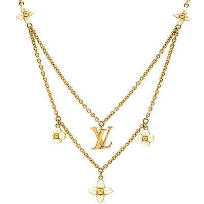 ルイヴィトン LOUIS VUITTON ネックレス LV フローラグラム GP フェイクパール ゴールド ロゴ モノグラムフラワー LVイニシャル M00981 GK1254 【中古】