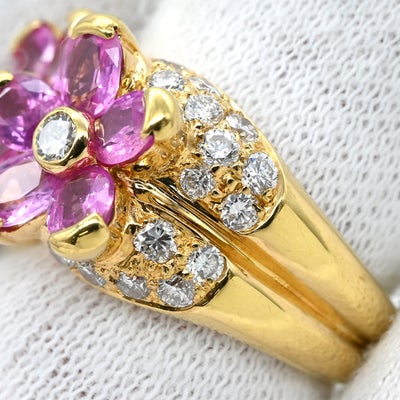 ポンテヴェキオ Ponte Vecchio リング 指輪 ピンクサファイア ダイヤ フラワーモチーフ ピンク×イエローゴールド Au750 18K 18金 YG 花 10号 【中古】