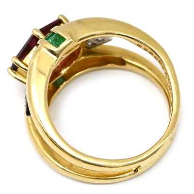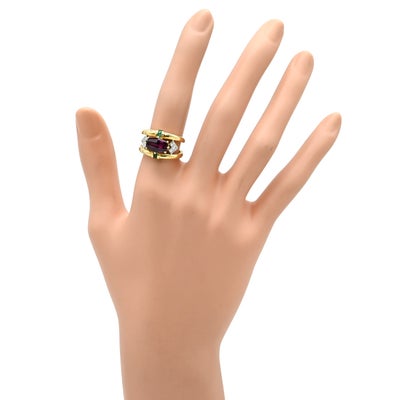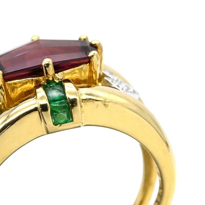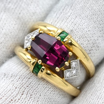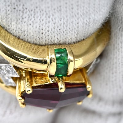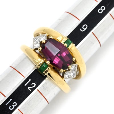 梶光夫 MITSUO KAJI リング 指輪 ロードライトガーネット 2.39Cct エメラルド ダイヤ マルチカラーXイエローゴールド デザインリング 750 18K YG プラチナ900 10.5号 【中古】