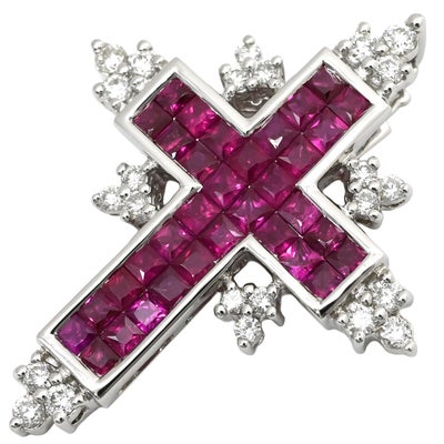 笠原真寿美 MASUMI KASAHARA ペンダントトップ レ・エッセンシャル ルビー ミステリーセッティング クロス レッド×ホワイトゴールド ダイヤ 750 十字架 【中古】