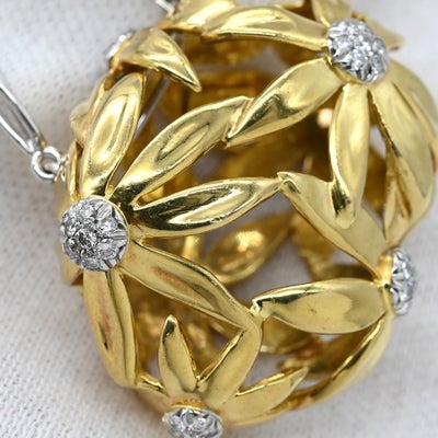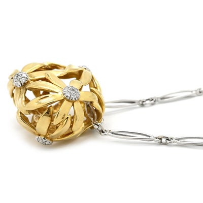 ガラヴェリ GARAVELLI ネックレス かご フラワー ペンダント イエローゴールド×ホワイトゴールド 750 18金 WG YG 花 立体 透かし模様 【中古】